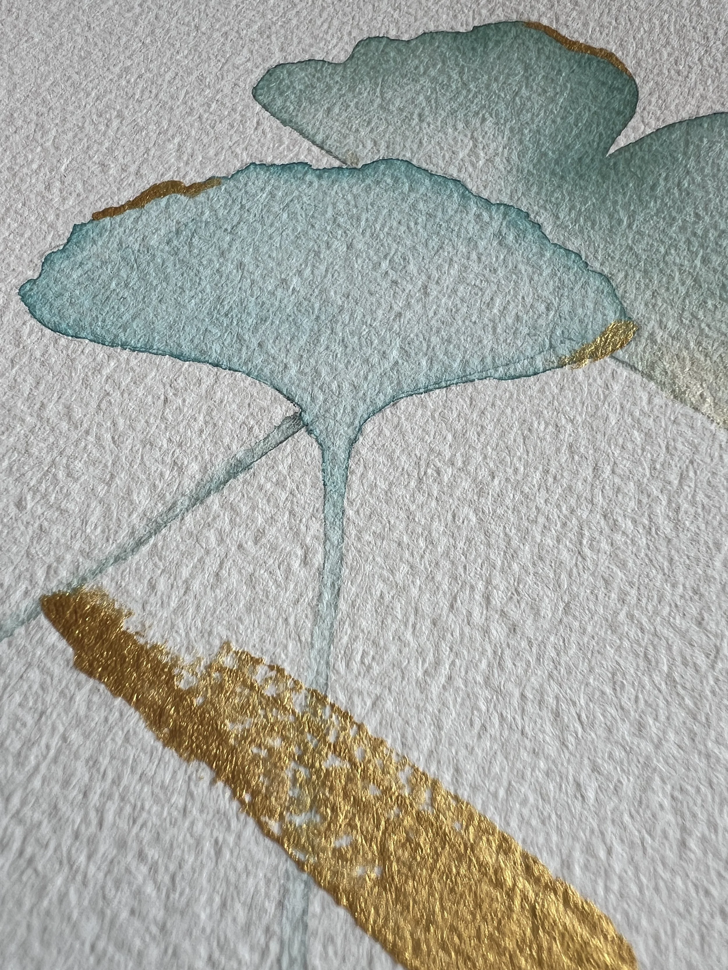Dos hojas de ginkgo con toques dorados que capturan la luz y el silencio.