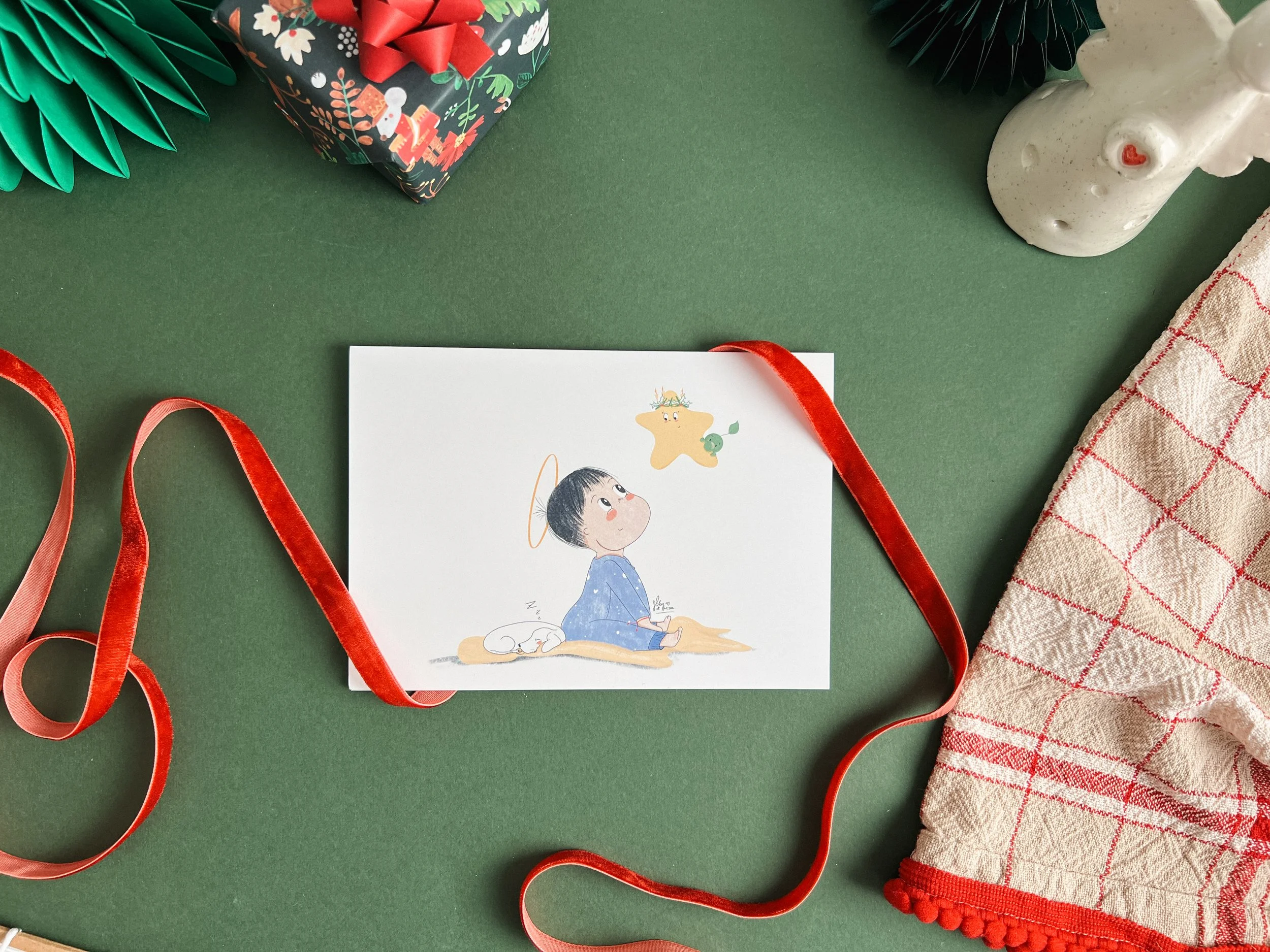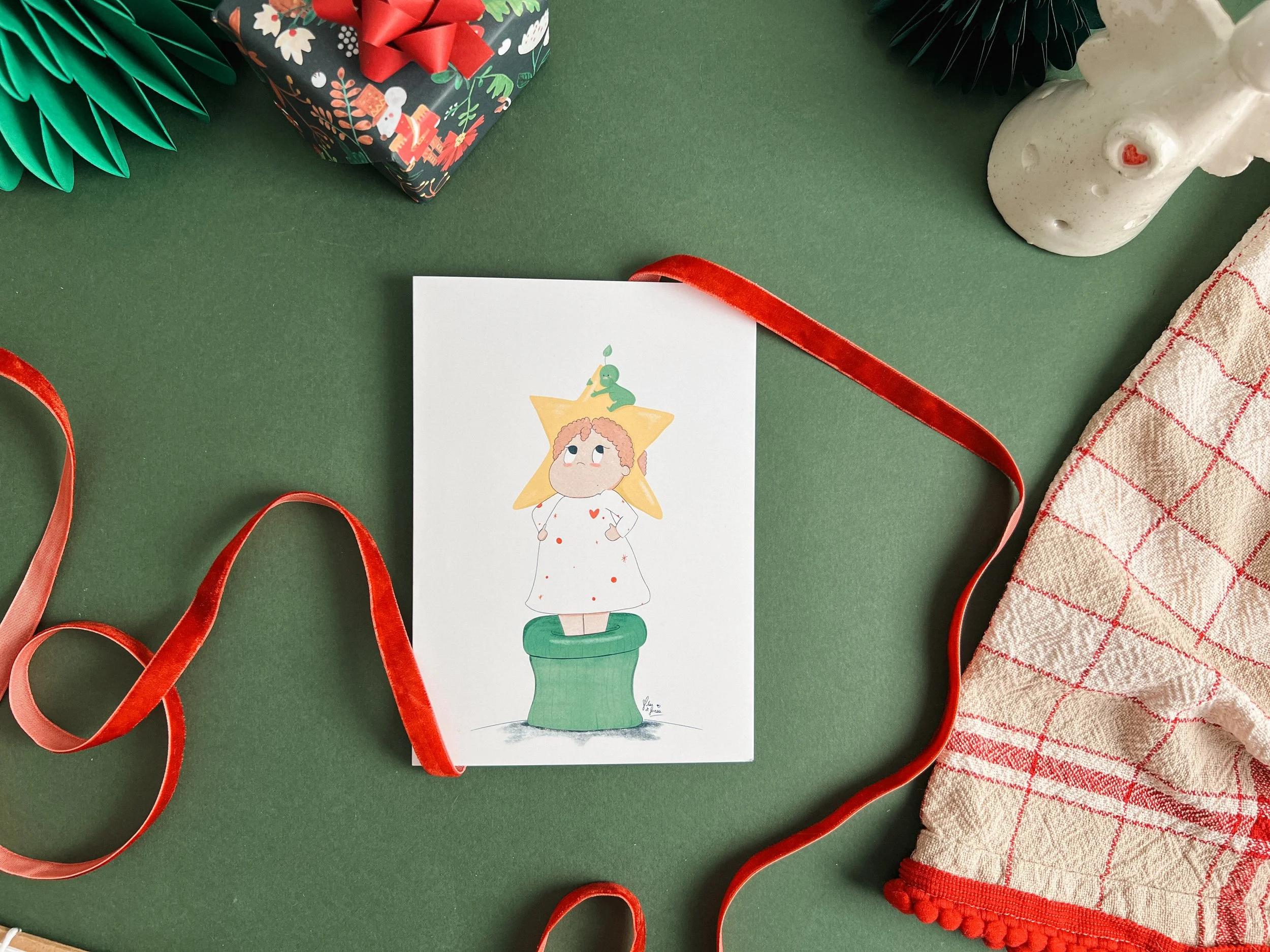 El pack incluye 5 postales de personajes de Friesa, impresas en papel de 300g, ideales para escribir dentro. También viene con un sobre de papel kraft de 130g.